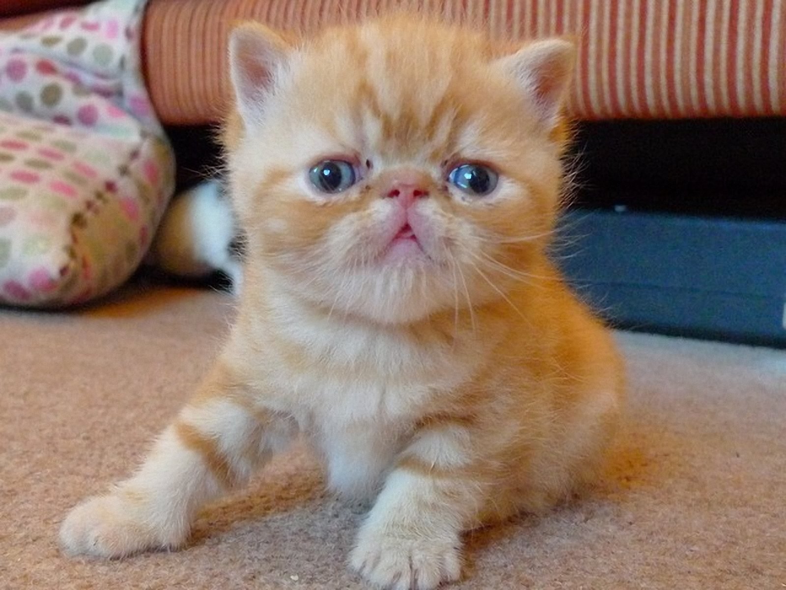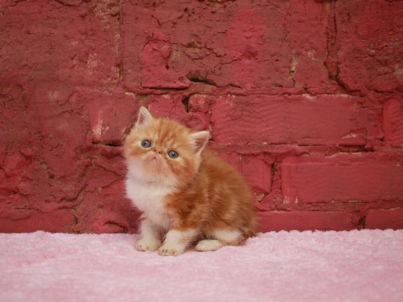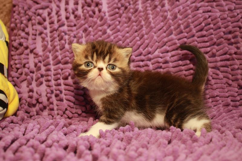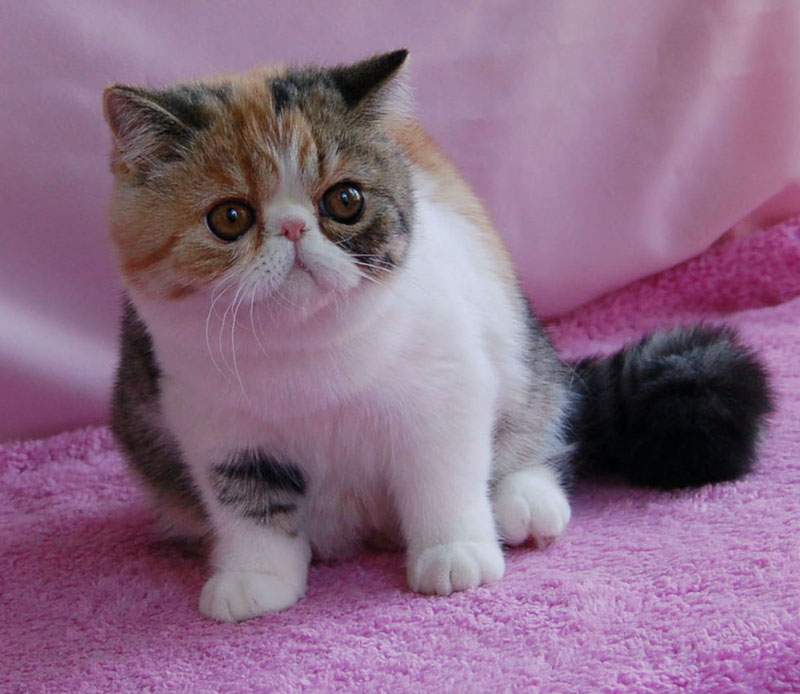 Короткошерстной экзотической кошке присущи все те же окрасы, что и персу. Определить окрас у малышей не представляется возможным, потому что он проявляется со временем.