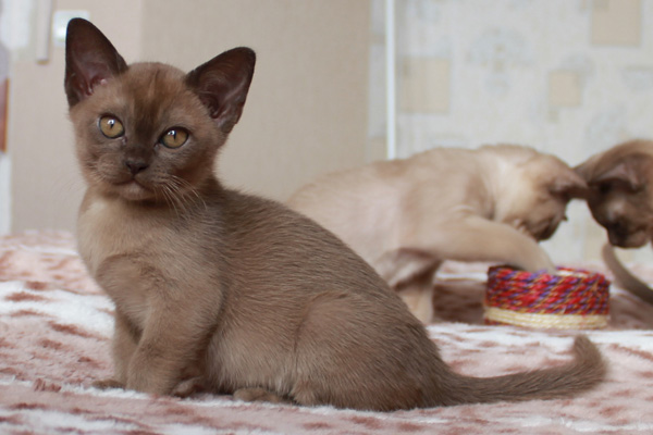 Что касается окраса, то у бурманских котят он формируется до года и преобразовывается в соболиный, а до этого имеет разные оттенки как светло- так и темно-бежевого. Для тех, кто планирует заводить питомца исключительно для выставок, тогда следует обратить внимание уже на молодую, а лучше – взрослую кошку.