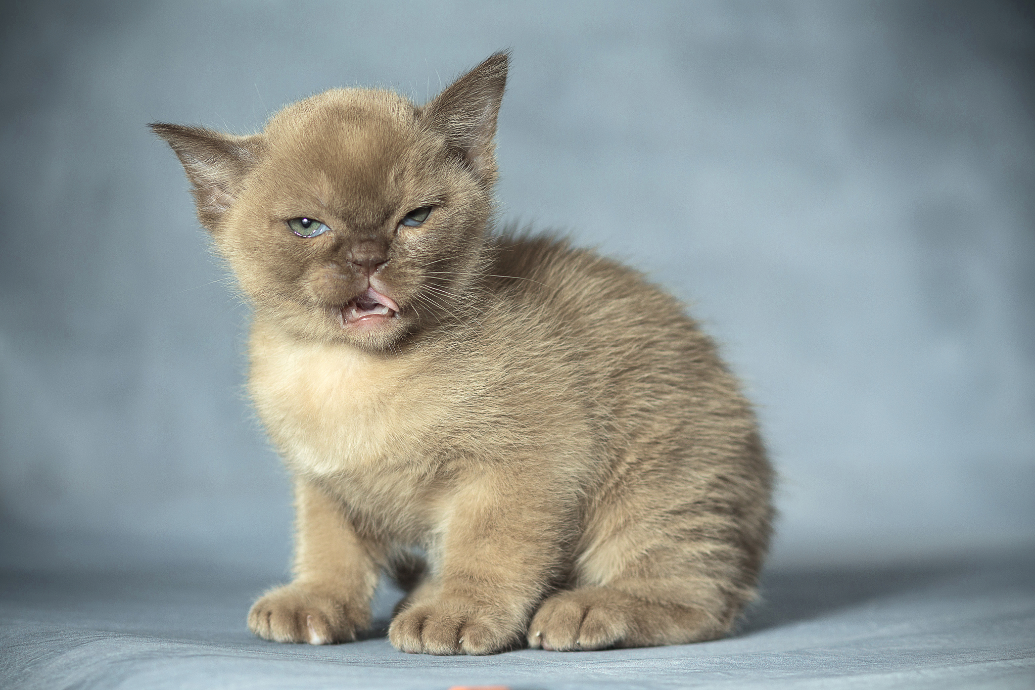 Основной уход за бурманскими котятами такой же, как и за потомством других пород: очищайте ушную раковину изнутри ватным тампоном, глаза – марлевыми дисками или спонжами, предварительно смоченными в теплой кипяченой воде.
