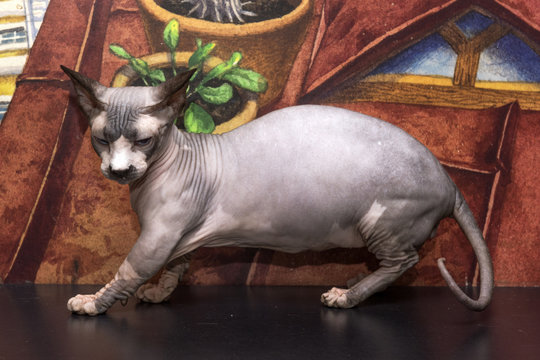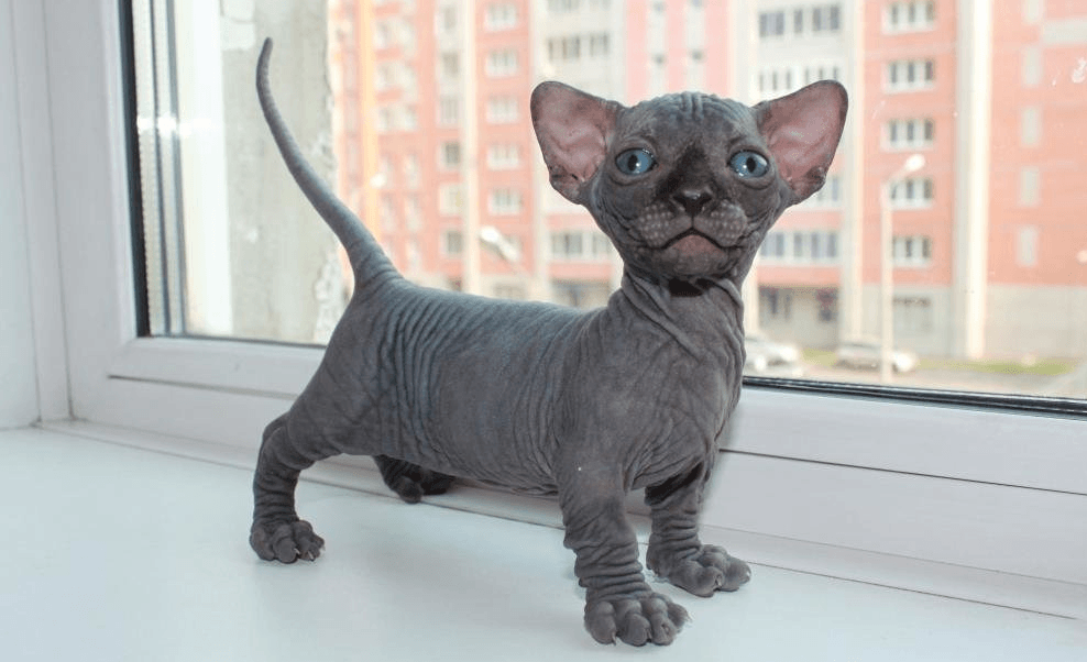 Бамбино, как порода, была представлена миру относительно недавно: в 2005 году. Представляет собой смесь канадского сфинкса и манчкина. Животное легко узнать по отличительным чертам: коротким лапам, огромным ушам и гладкому, практически без шерсти, телу.