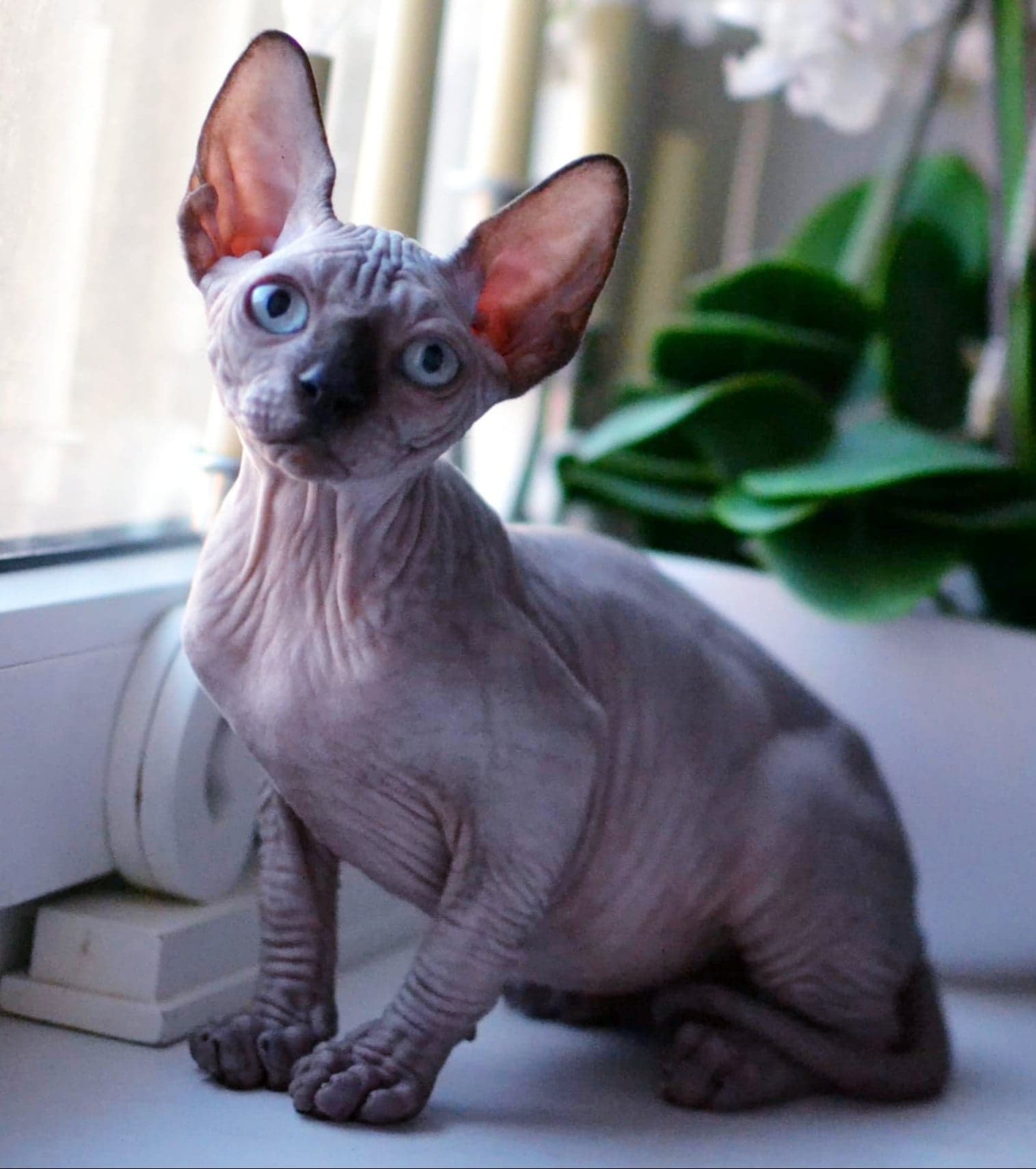 Марина “ Этого кота завела моя мама. Для меня такая порода уж слишком оригинальна, наши обычные мурчики мне больше по душе. Сразу скажу, что для детей лучшего друга вы не найдете, ни одна порода не будет относиться к их шалостям более снисходительней. Но есть свои минусы, если вы считаете, что лысая кошка означает отсутствие проблем с шерстью, то смею вас разочаровать. Проблем с ней будет даже больше, ведь им нужен особый температурный режим, их нужно часто купать, если этого не делать, тело будет издавать неприятный запах, не исключены дерматиты. Кожа между пальцами тоже требует особого ухода, после каждого купания ей нужно уделять пристальное внимание.